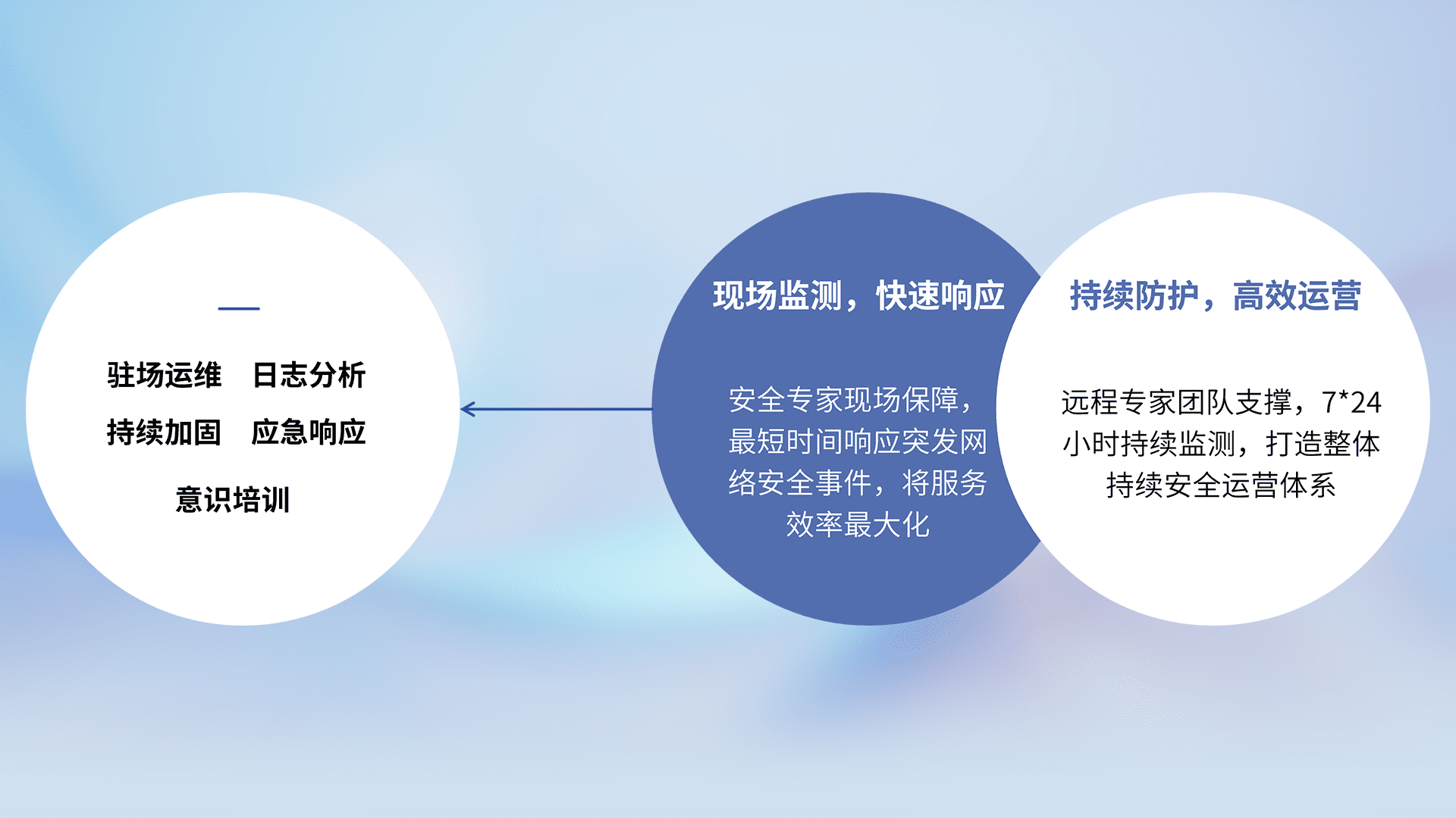 7X24小时持续监测安全事件,保持安全策略有效性,降低资产脆弱性风险,,精准拦截黑客攻击,,,减少被黑客利用的机会,,,,第一时间遏制,,降低损失。。。
